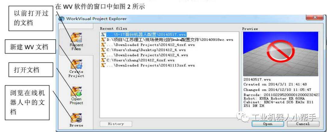 將電腦改成與機器人同一IP段,網(wǎng)線機器人與電腦連接,打開Workvisual軟件(以下為WV)。