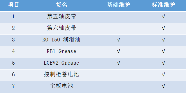 保養(yǎng)材料明細(xì)(以庫(kù)卡機(jī)器人為例)