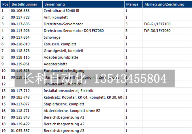 KUKA kr 30-3機(jī)器人配件訂貨號: